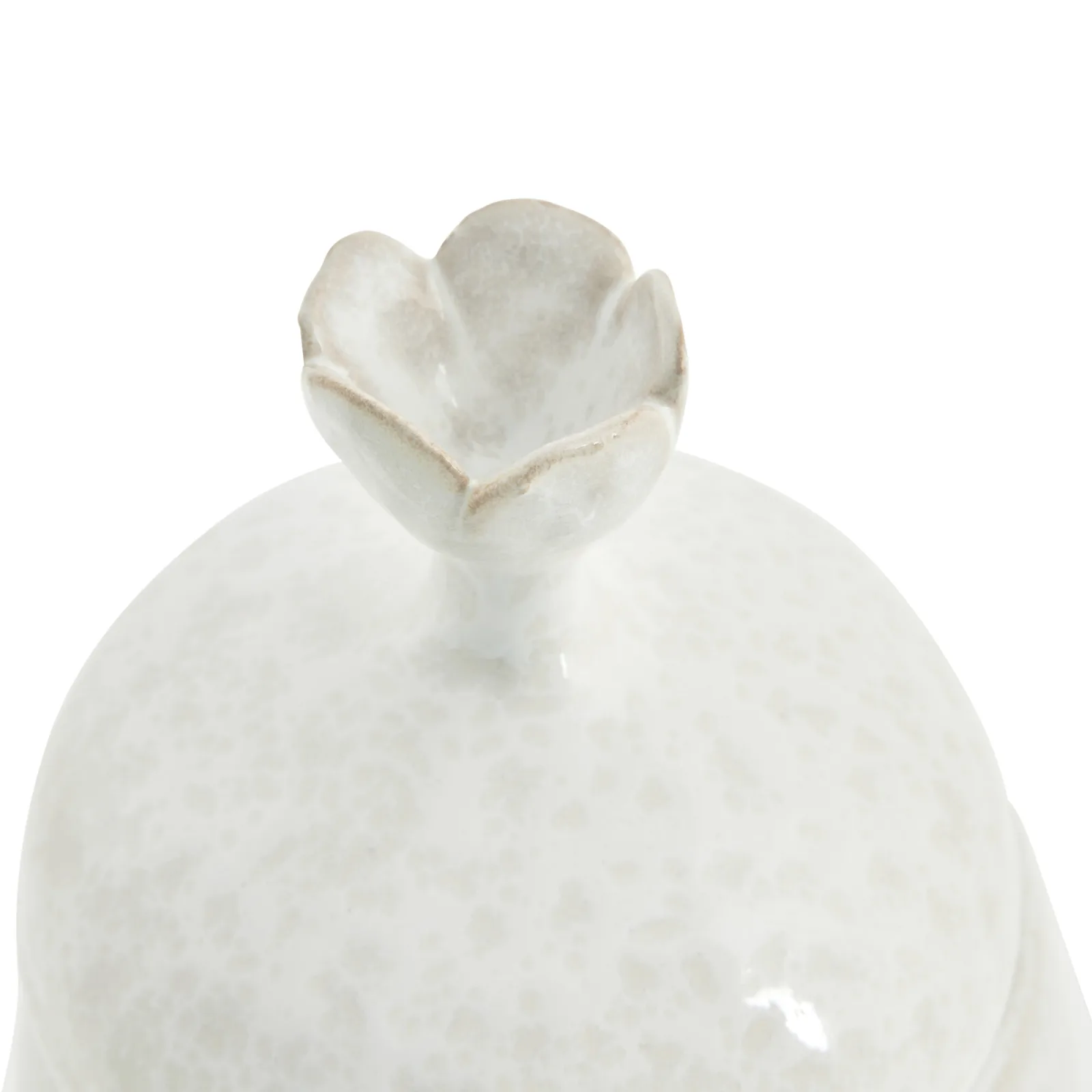 Ova prekrasna doza, u još ljepšoj boji, kombinira funkcionalnost i eleganciju u jednom jednostavnom dizajnu. Izrađena je od glazirane keramike s glatkom površinom i prekrivena ukrasnim poklopcem s cvjetnim uzorkom kao ručkom. Savršena je za pohranu malih predmeta u kuhinji, kupaonici ili kao čisti ukras u dnevnoj sobi.