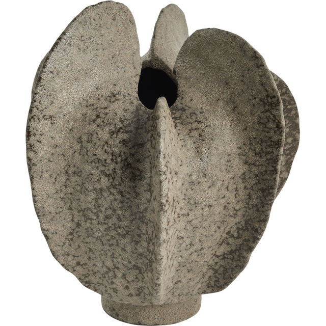 Učinite svoj dom osobnijim s ovom jedinstvenom vazom. Vaza je dizajnirana korištenjem mekih, organskih krivulja i teksturiranom površinom u prirodnim sivim i zemljanim tonovima, što je istovremeno čini vazom i skulpturom. Izgleda prekrasno sa i bez cvijeća i služi kao dekorativni središnji dio vašeg doma.